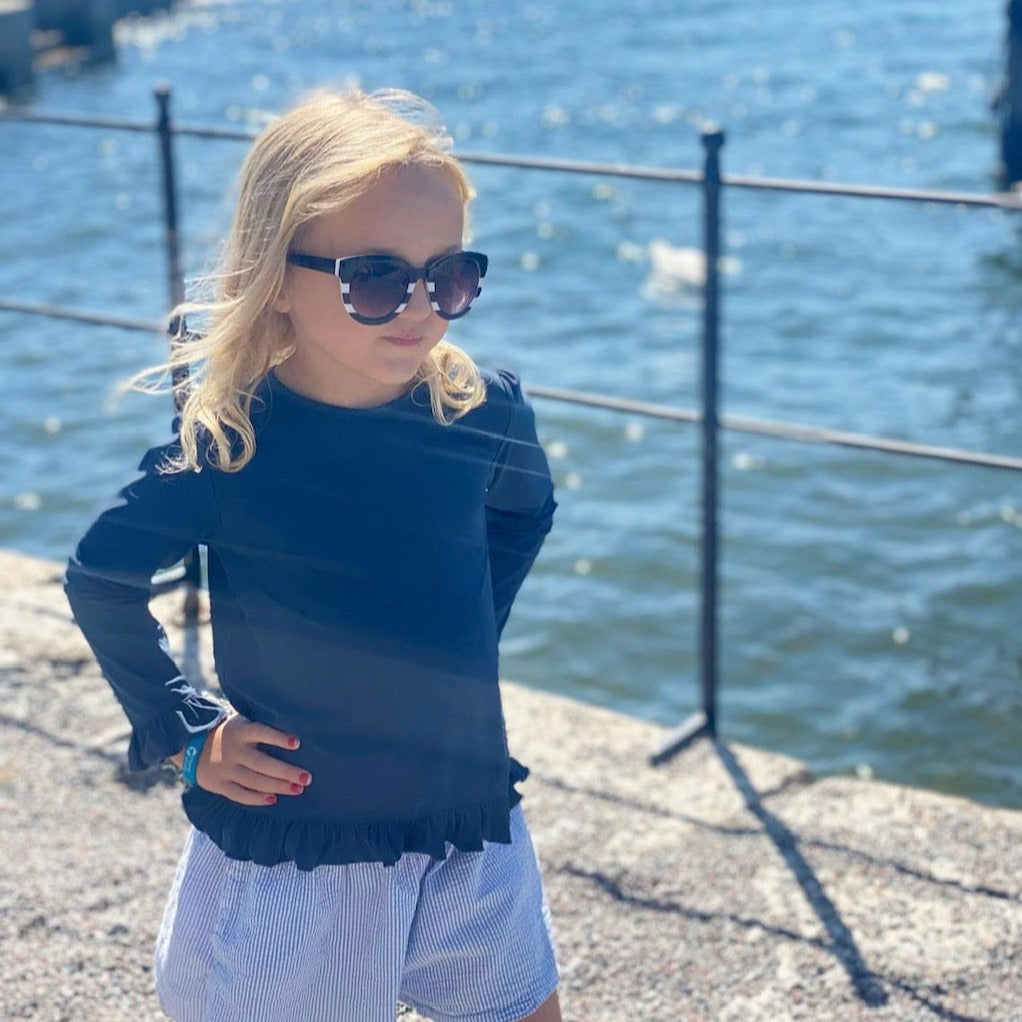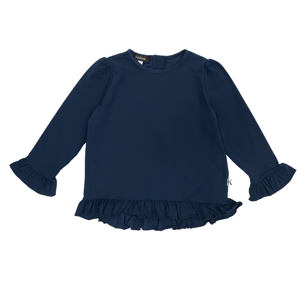Snygg UV-topp med UPF50, producerad i samarbete med hudläkare. Toppen har långa ärmar och knapp i nacken. Den är tillverkad med ett italienskt koordinerat tygsystem baserat på innovativ och patenterad teknologi. Kalani använder endast tyger som uppfyller Oeko-Tex Standard 100, vilket garanterar säkerhet mot skadliga ämnen.