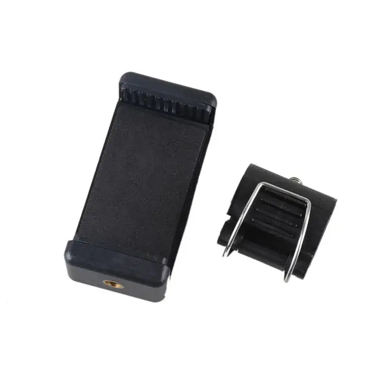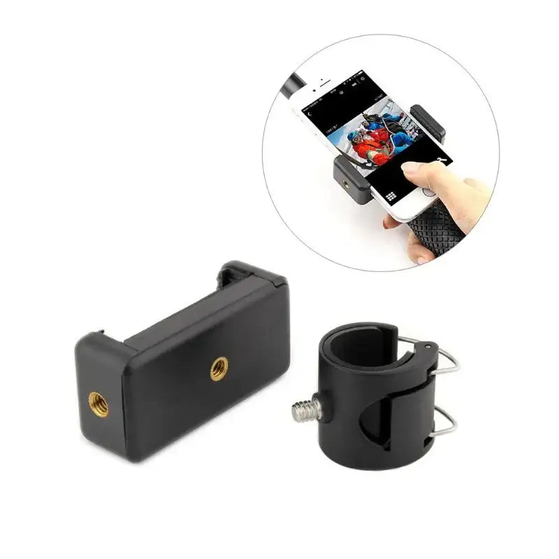 Själva mobilhållaren har ett fjädrande, gummerat gap och kan hålla mobiler som är mellan 6,7cm - 9cm breda (de flesta smartphones). På hållaren sitter 2st 1/4" skruvfästen, ett på baksidan och ett på ena kortsidan. Med hållaren följer ett fäste med en 1/4" skruv att skruva in på valfri plats i hållaren. Detta fäste kan du sedan snäppa fast runt din selfiepinne med ett fjädrande snäpplås. Fästet klarar av selfiepinnar med diameter mellan 2,6-3cm