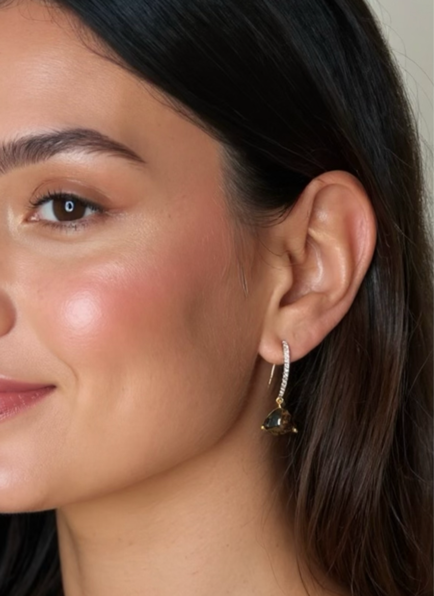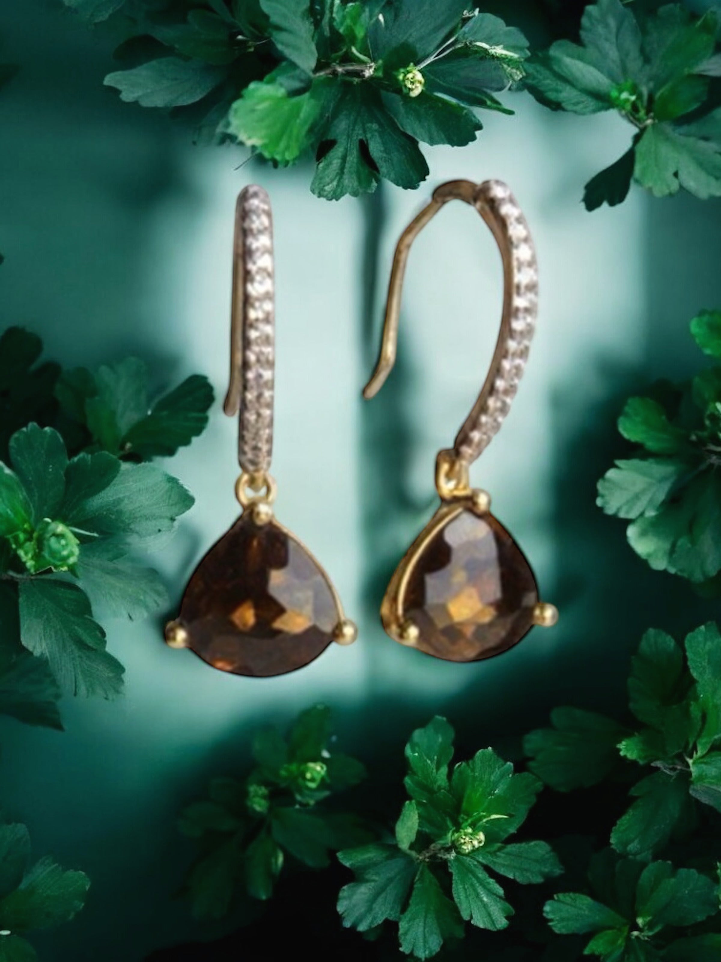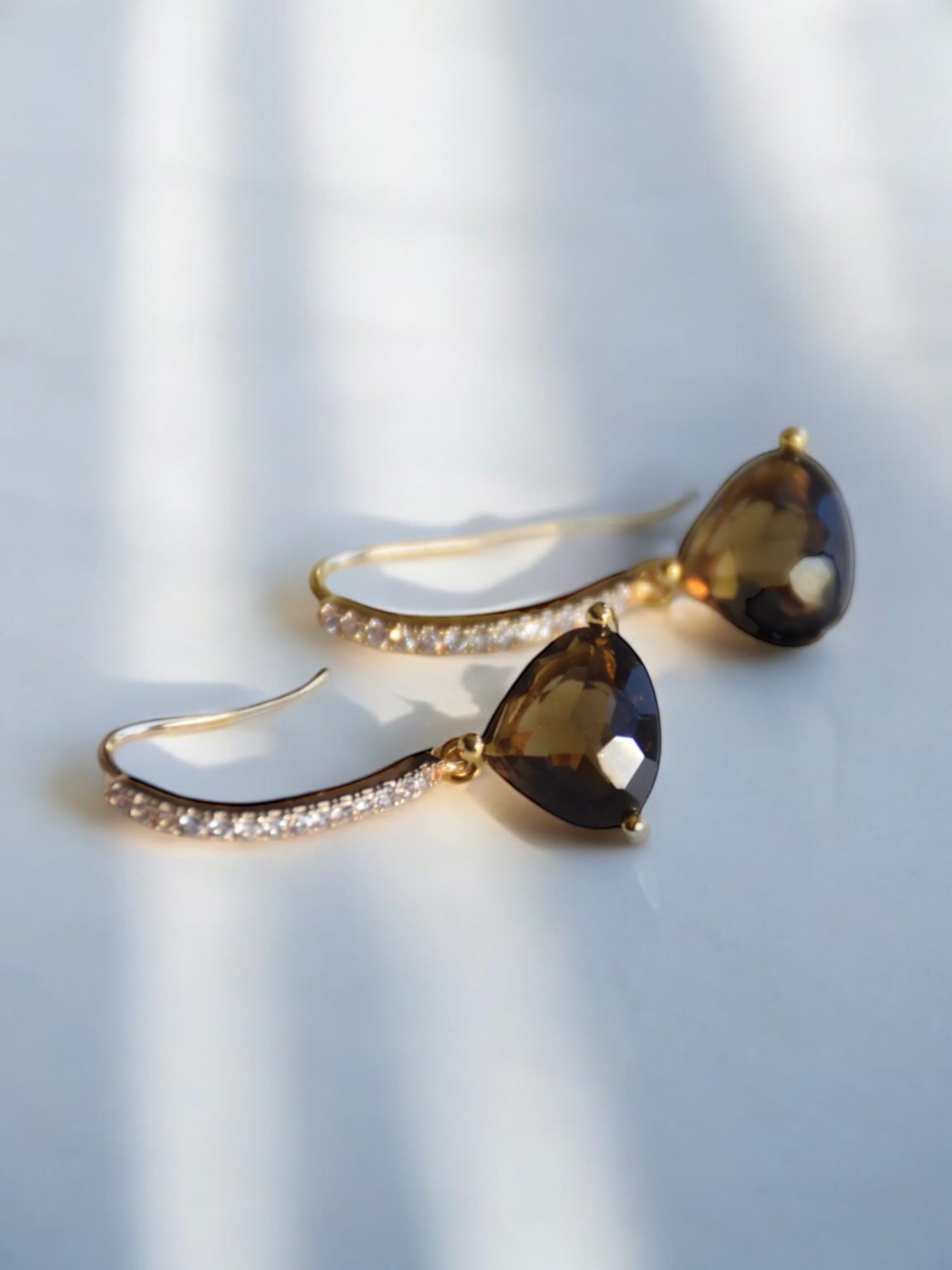 Material: Guldpläterade örhängen med cubic zirconer med mochabruna hängen.