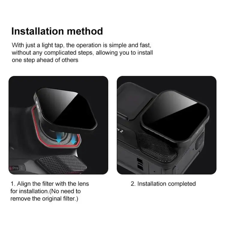 Skonsam installation – filtret monteras säkert utan att skada originalobjektivet.