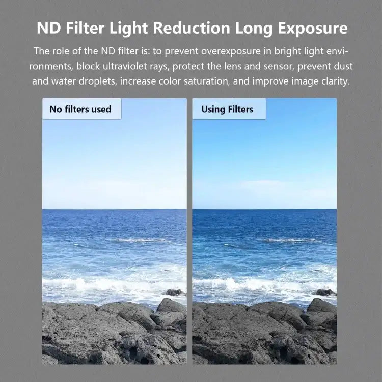 ND16PL – Perfekt för halvsoliga dagar eller miljöer med måttlig ljusstyrka. Ger en naturlig balans mellan ljus och rörelse.