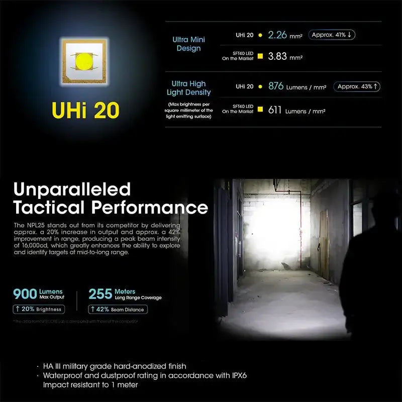 I hjärtat av Nitecore NPL25 ficklampa sitter en UHi 20 LED-diod, utvecklad av NiteLab.