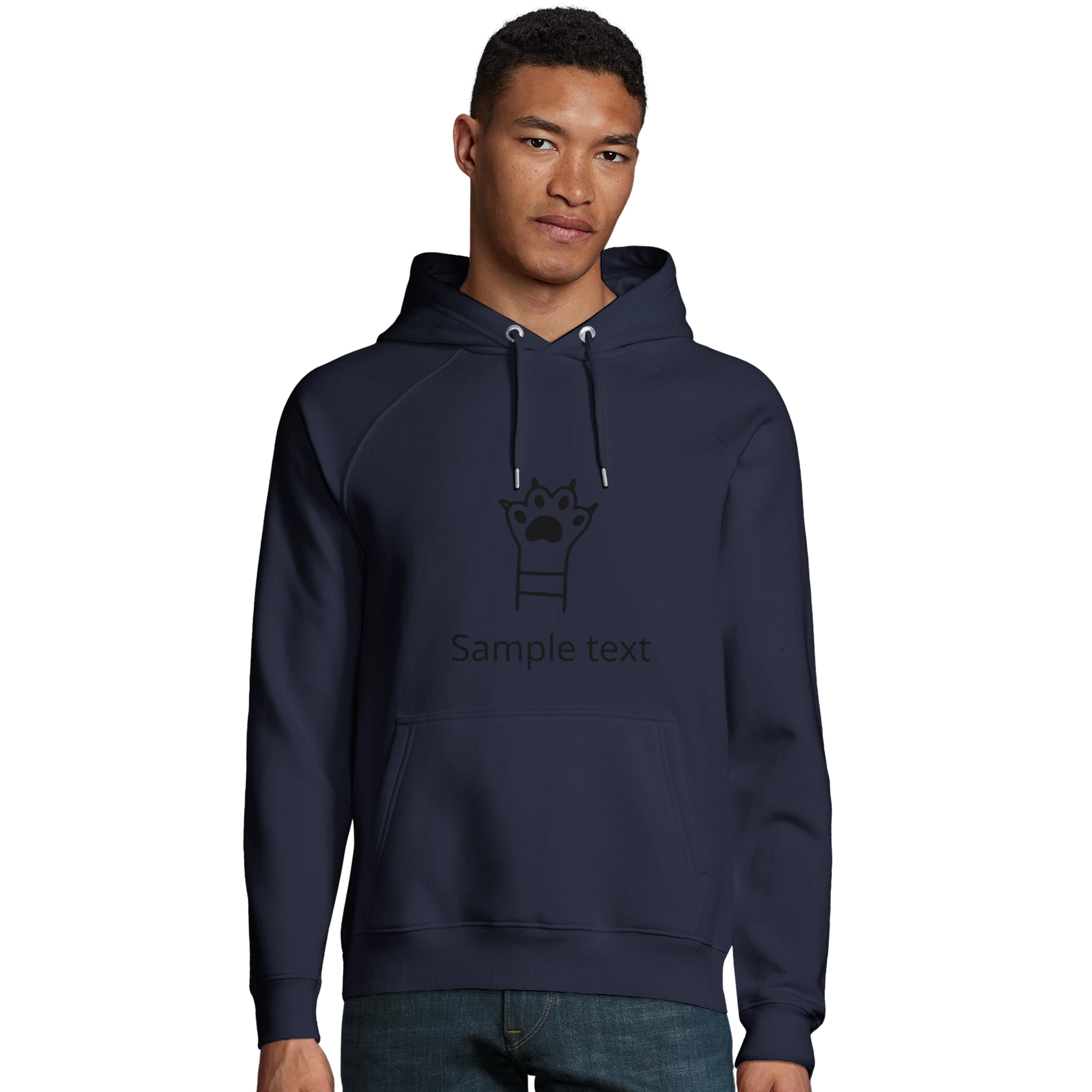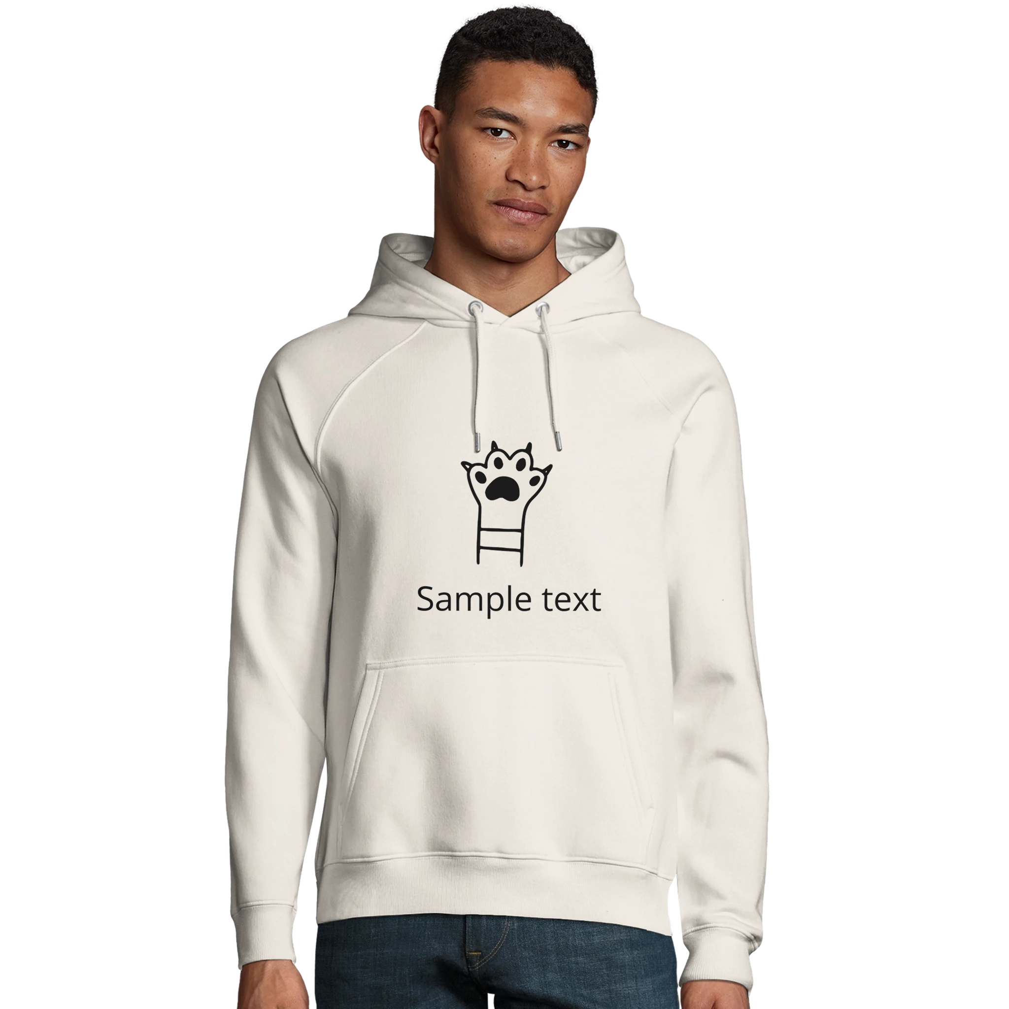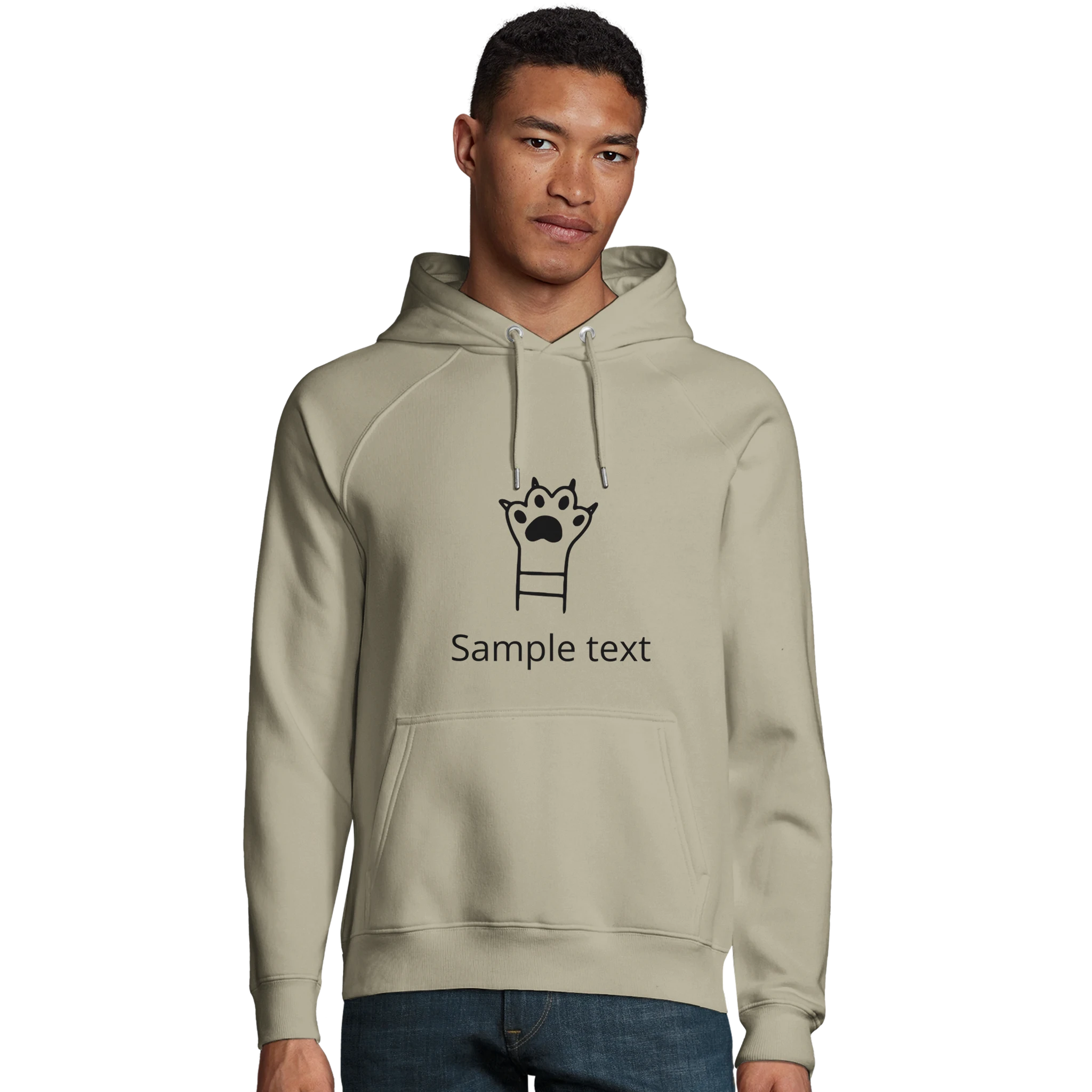 En hållbar och bekväm unisex-tröja med huva tillverkad av en blandning av ekologiskt odlad bomull och återvunnen polyester.