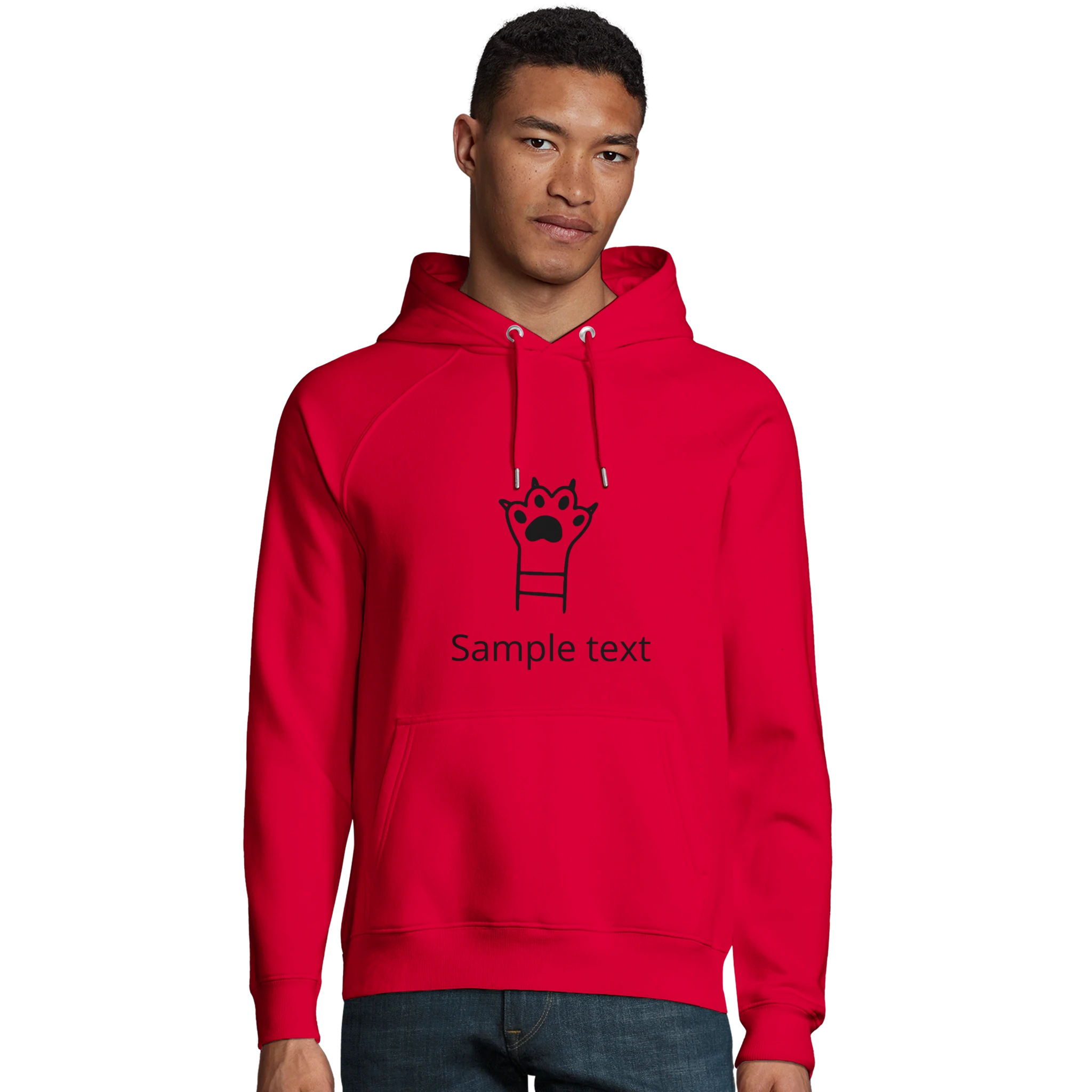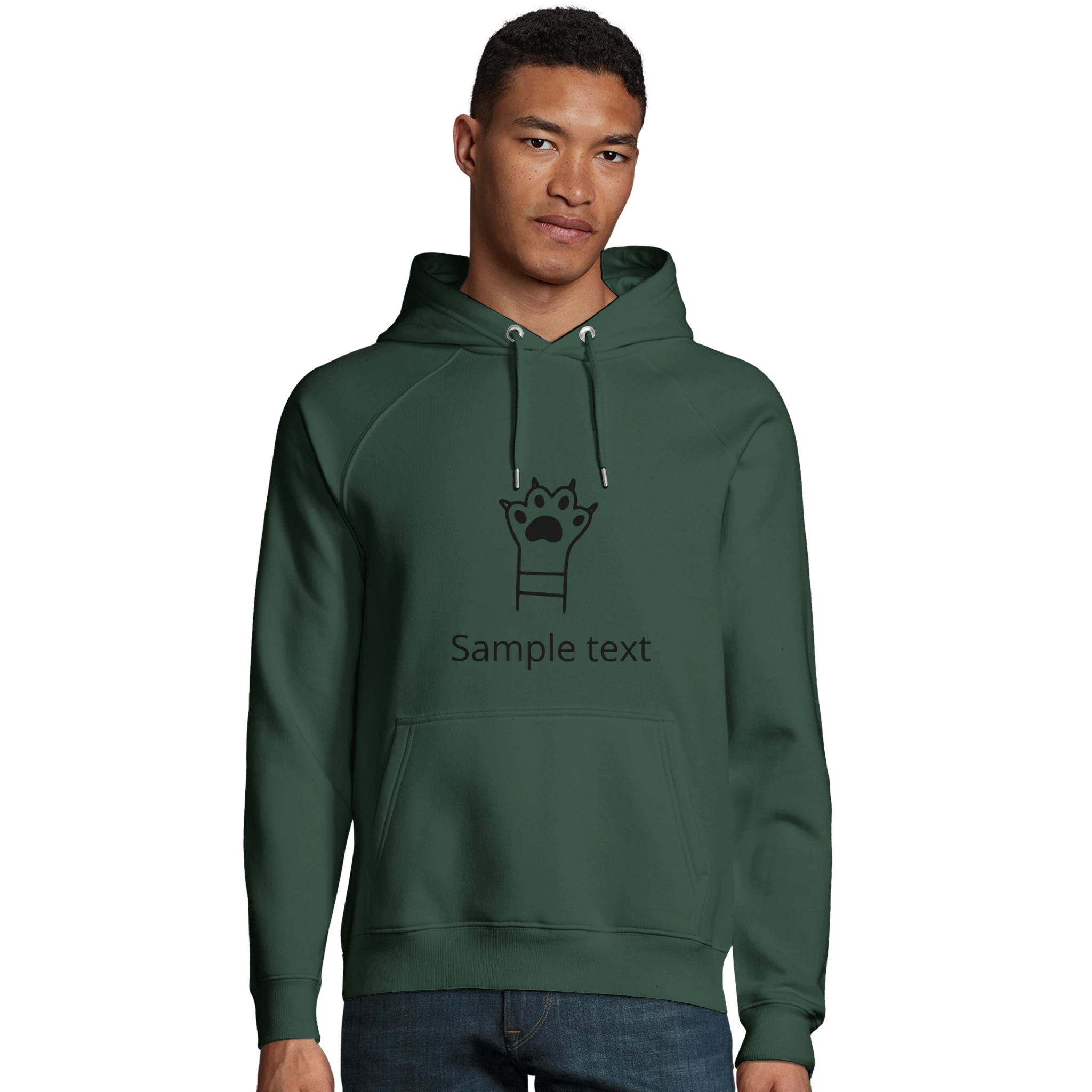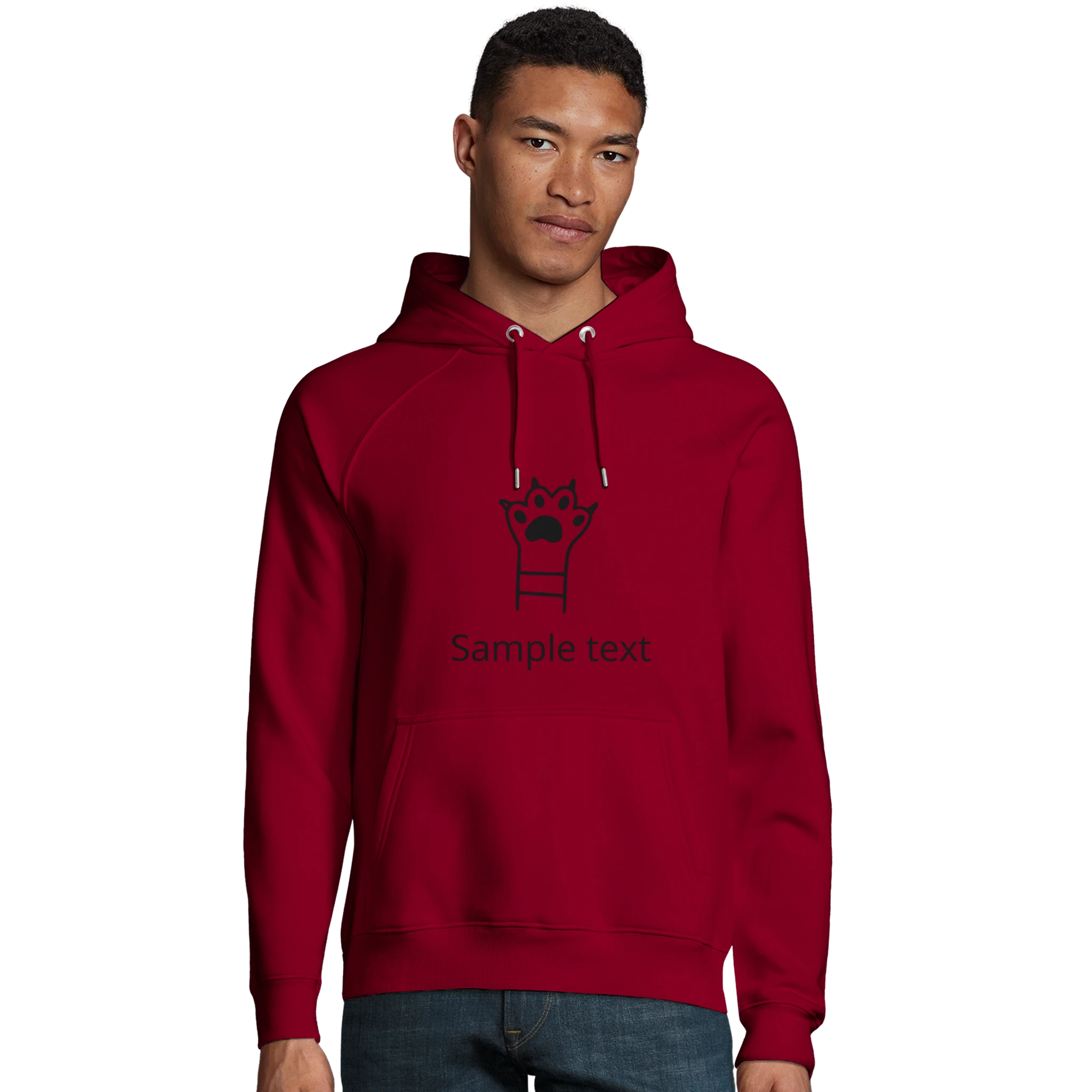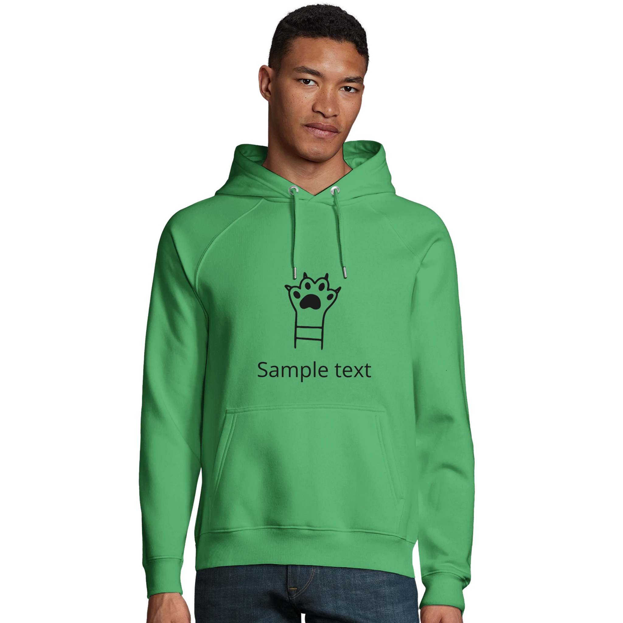 En hållbar och bekväm unisex-tröja med huva tillverkad av en blandning av ekologiskt odlad bomull och återvunnen polyester.