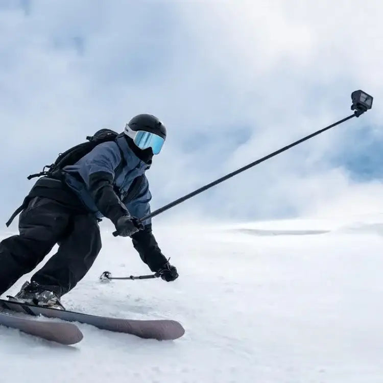 Trots sin imponerande räckvidd är staven mycket kompakt när den är hopfälld – perfekt att lägga i fickan, ryggsäcken eller kameraväskan.