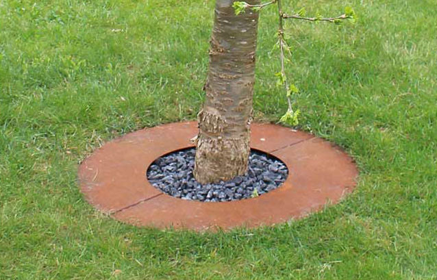Håll snyggt runt träd och buskar med vår praktiska robotring. Den består av två halvor i plåt som enkelt skruvas ihop runt stammen. När den monteras i nivå med gräsmattan kan robotgräsklipparen köra smidigt över utan hinder.