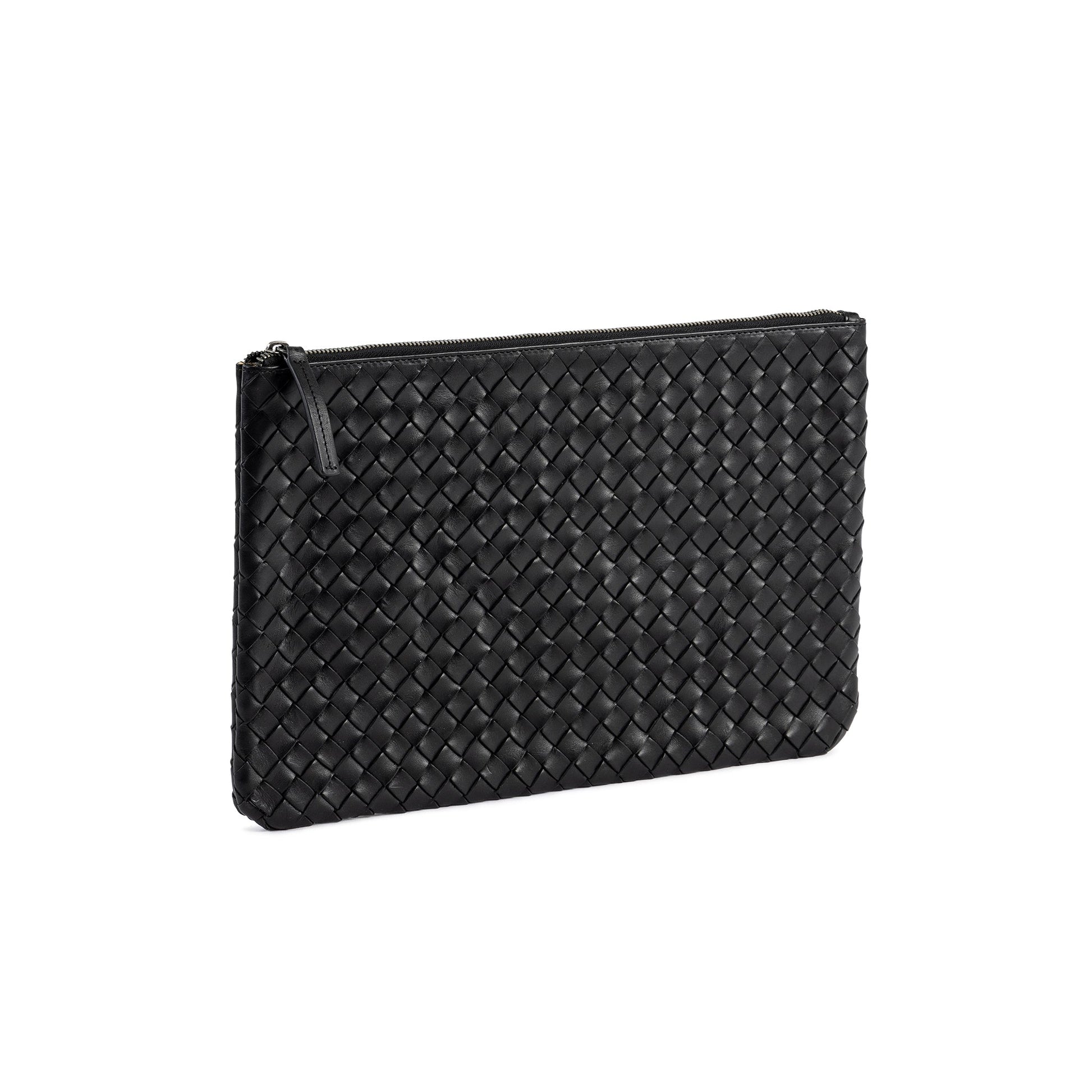 Elegant och funktionell datorväska i handflätat läder som ger ditt dagliga arbetsmaterial en personlig prägel. En extra ficka på insidan rymmer laddare och mindre papper. Det vegetabiliskt garvade, anilinfärgade narvlädret åldras naturligt med tiden och kommer att variera i färg och ytstruktur.