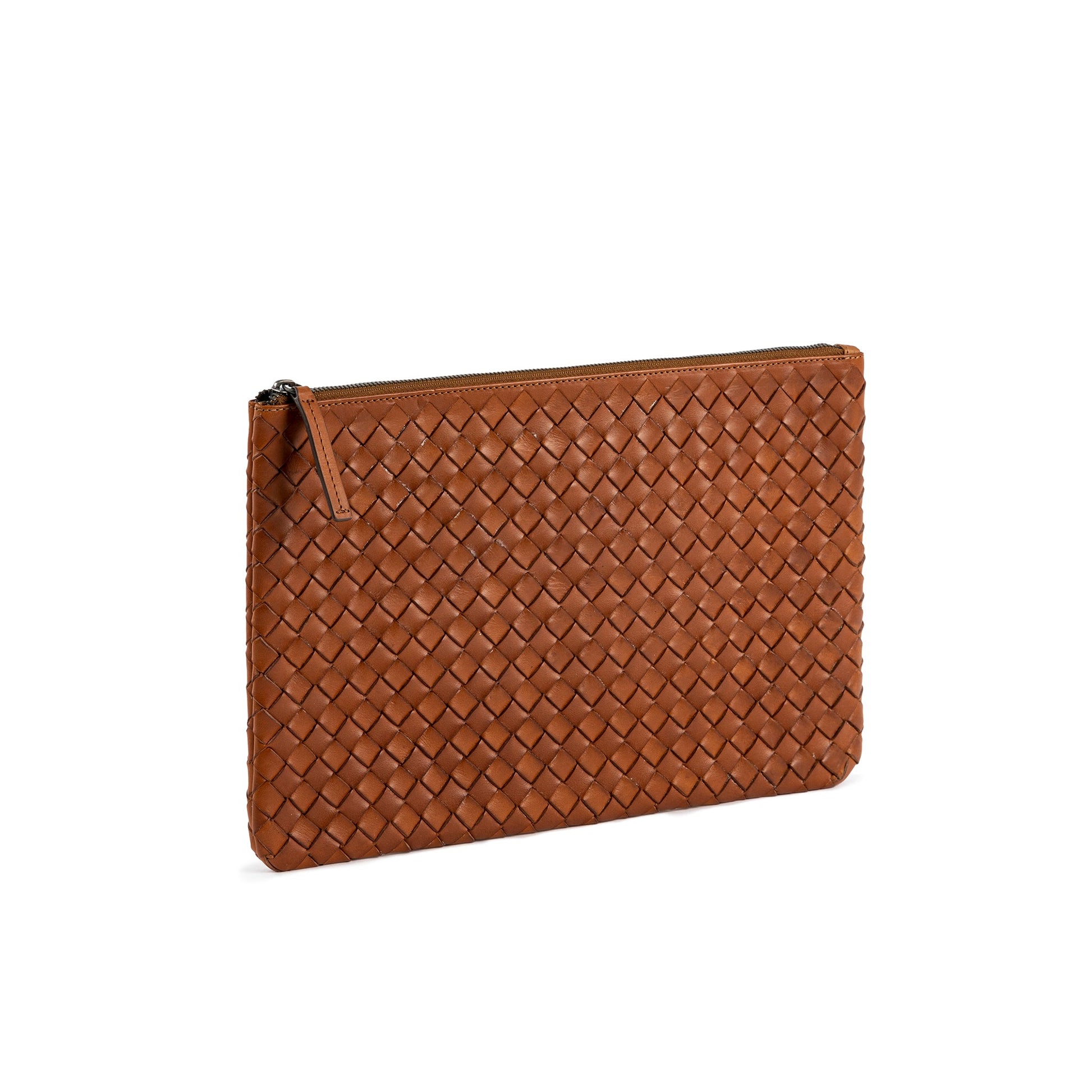 Elegant och funktionell datorväska i handflätat läder som ger ditt dagliga arbetsmaterial en personlig prägel. En extra ficka på insidan rymmer laddare och mindre papper. Det vegetabiliskt garvade, anilinfärgade narvlädret åldras naturligt med tiden och kommer att variera i färg och ytstruktur.