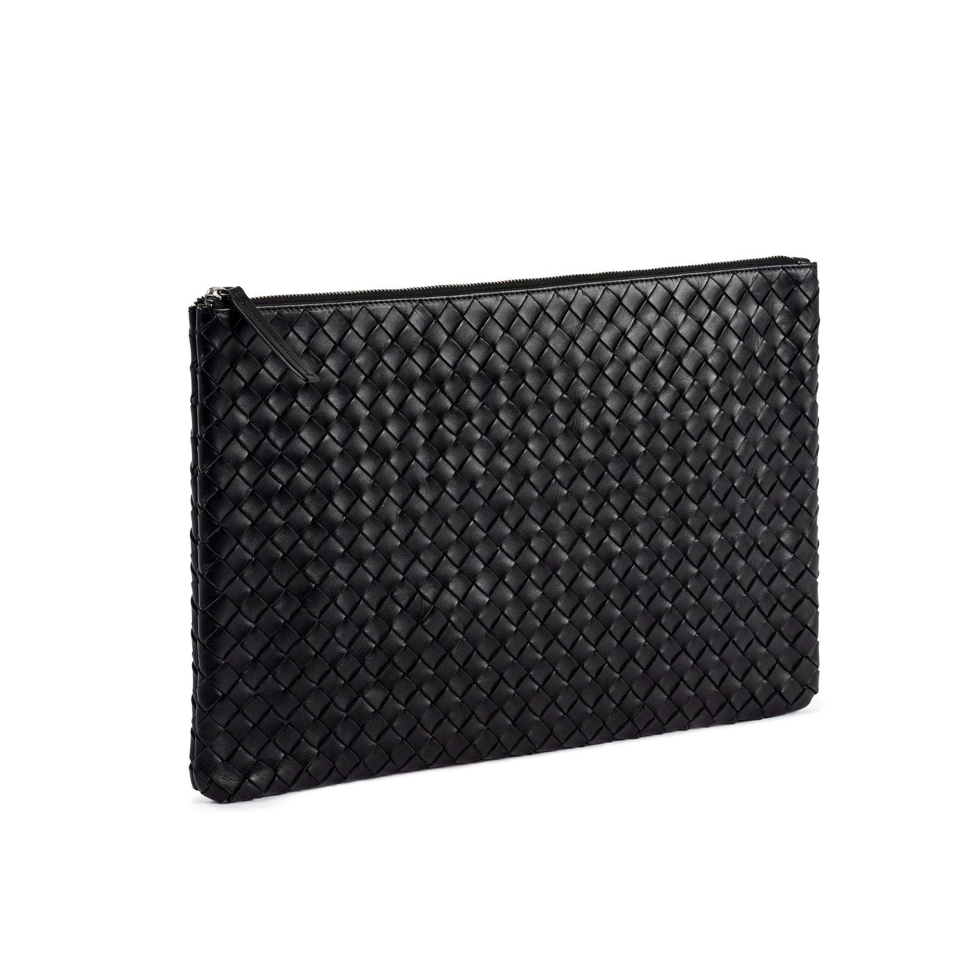 Elegant och funktionell datorväska i handflätat läder som ger ditt dagliga arbetsmaterial en personlig prägel. En extra ficka på insidan rymmer både papper och laddare. Det vegetabiliskt garvade, anilinfärgade narvlädret åldras naturligt med tiden och kommer att variera i färg och ytstruktur.