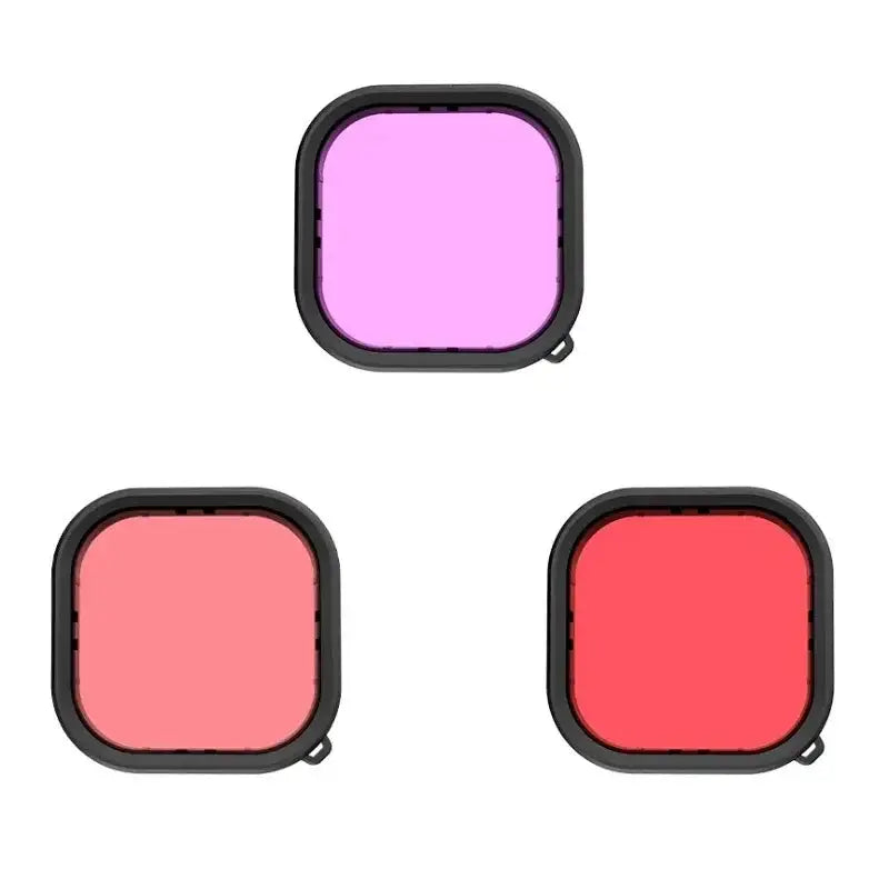 Telesin Färgfilter Röd + Ljusröd + Lila till Hero13/12/11/10/9 Black i vattentätt skal - Paket