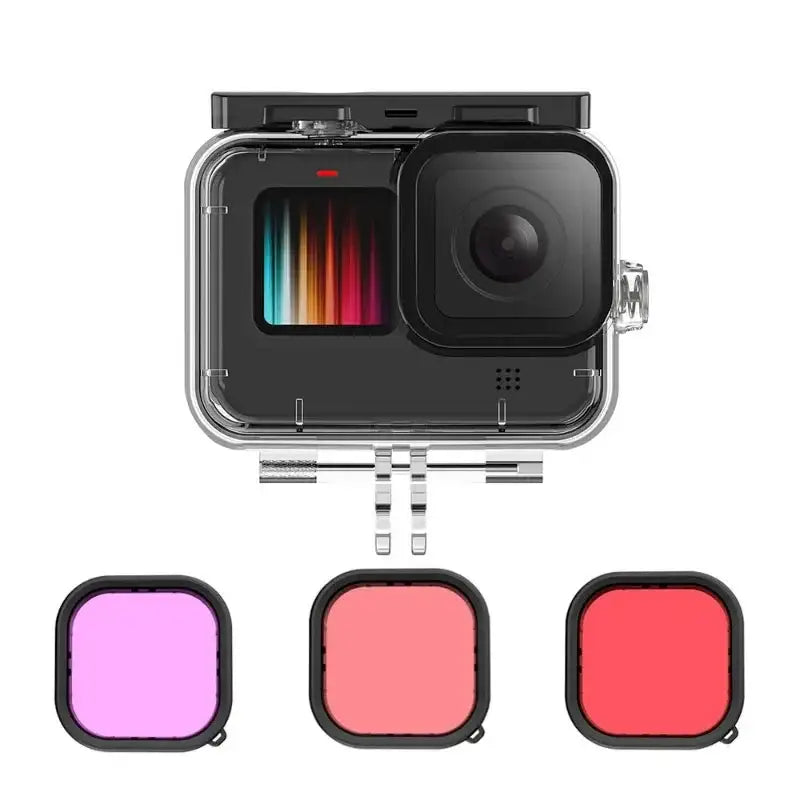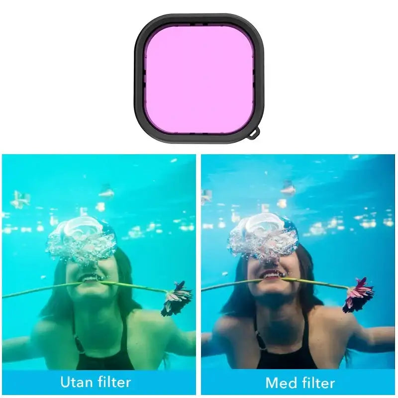 Filter från detta paket passar till GoPro Hero13/12/11/10/9 Black i vattentätt skal, (OBS passar vattentäta skal till Hero13/12/11/10/9 Black från ActionKing och motsvarande, passar inte Protective Housing från GoPro)